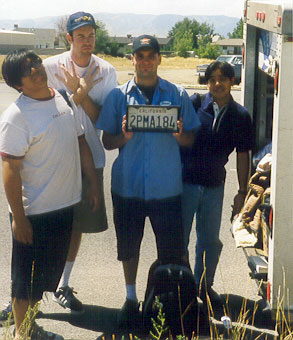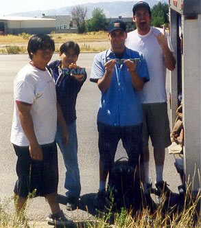 Here are some pics of SoCal's PUSHOVER (actually, they were Mealticket at the time) Their van broke down in Wyoming and they somehow got to Salt Lake. Here they are with the remains of the van:
